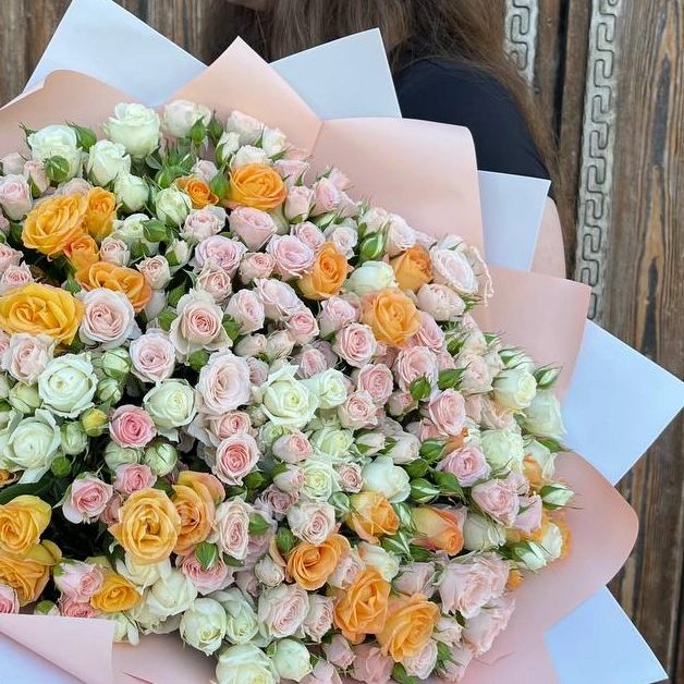 ГлавнаяКаталогРозыБукет 101 кустовая роза «Солнечный микс»