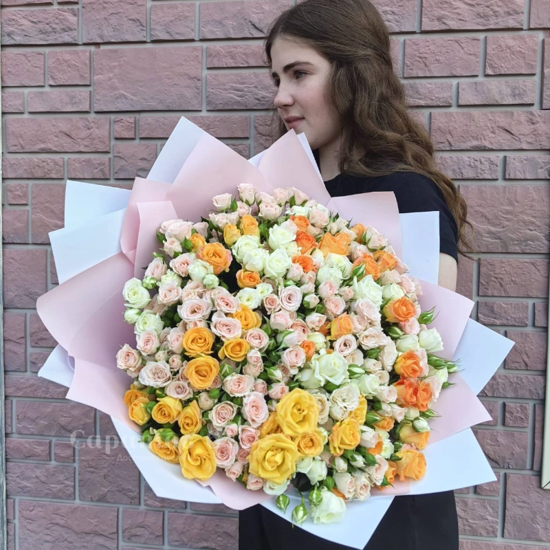 Букет 101 кустовая роза «Солнечный микс»