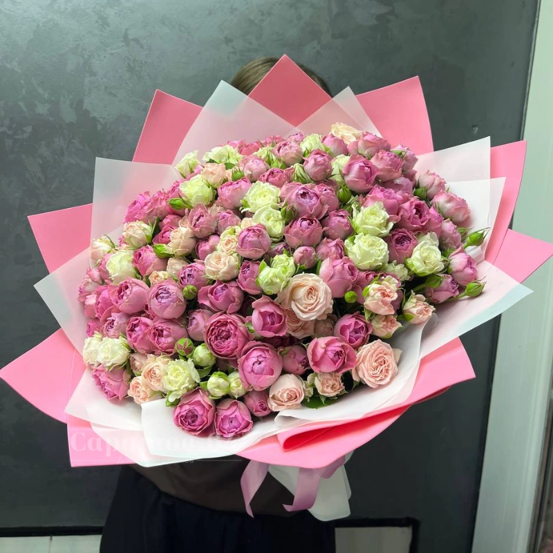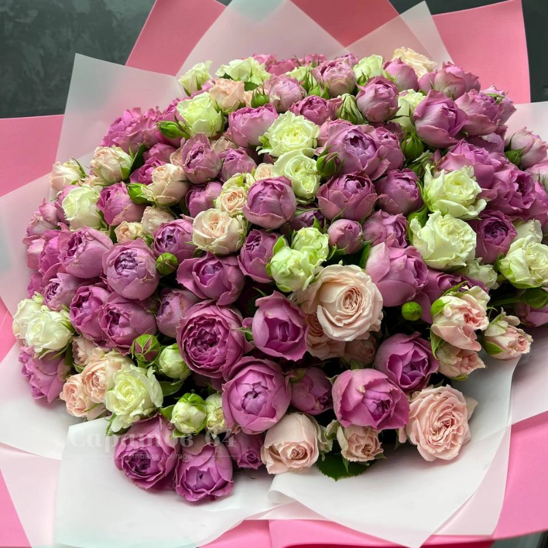 Букет из пионовидных кустовых роз «Мисти баблс»