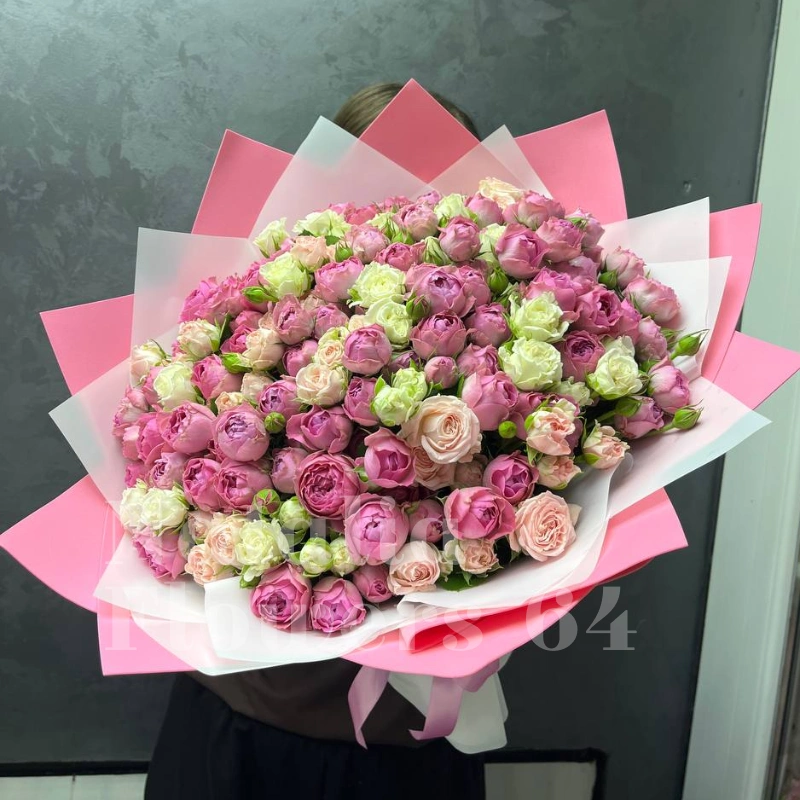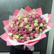 Букет с розами, хризантемами и альстромериями «облако счастья»