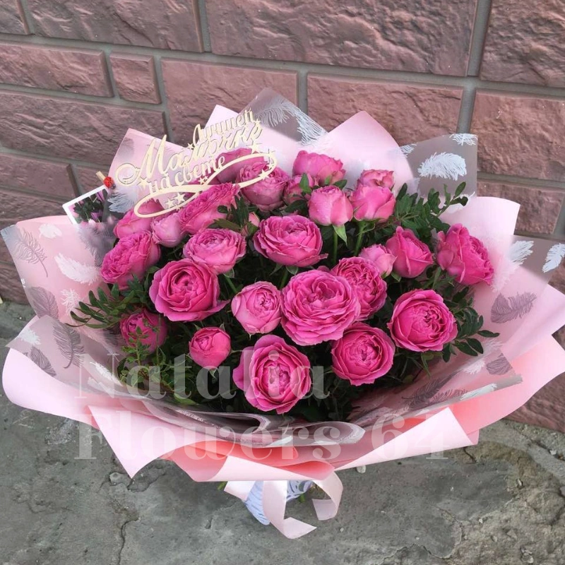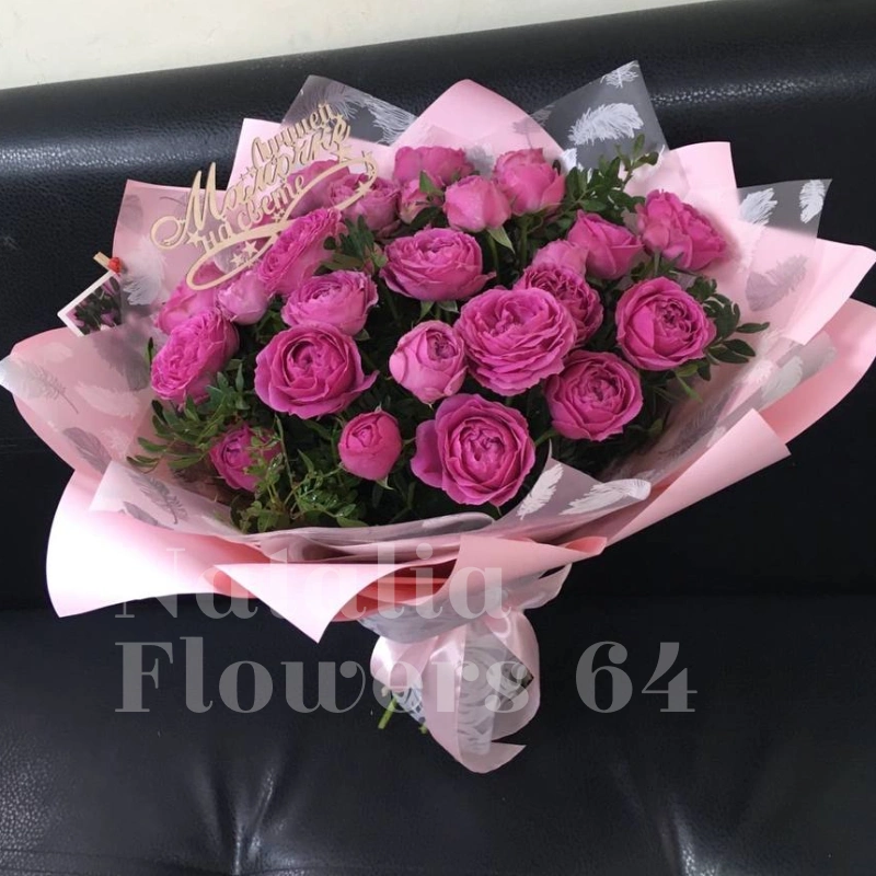 ГлавнаяКаталогРозыБукет из пионовидной кустовой розы «Мистик»