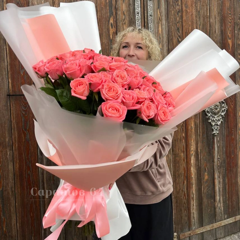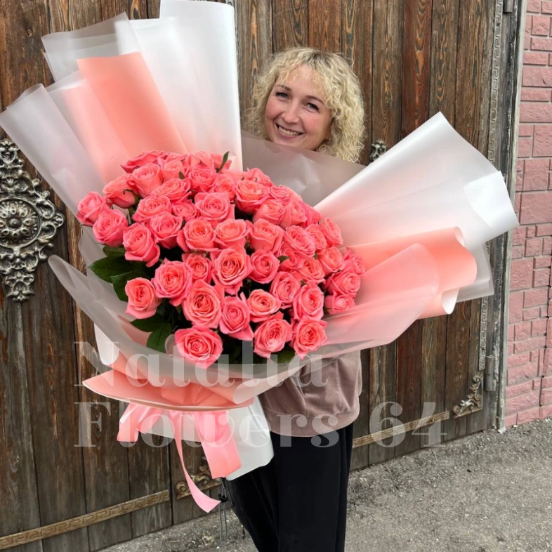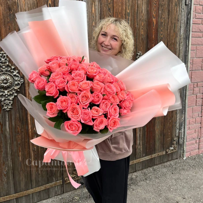 ГлавнаяКаталогРозыБукет из 51 розы «коралловый блеск»