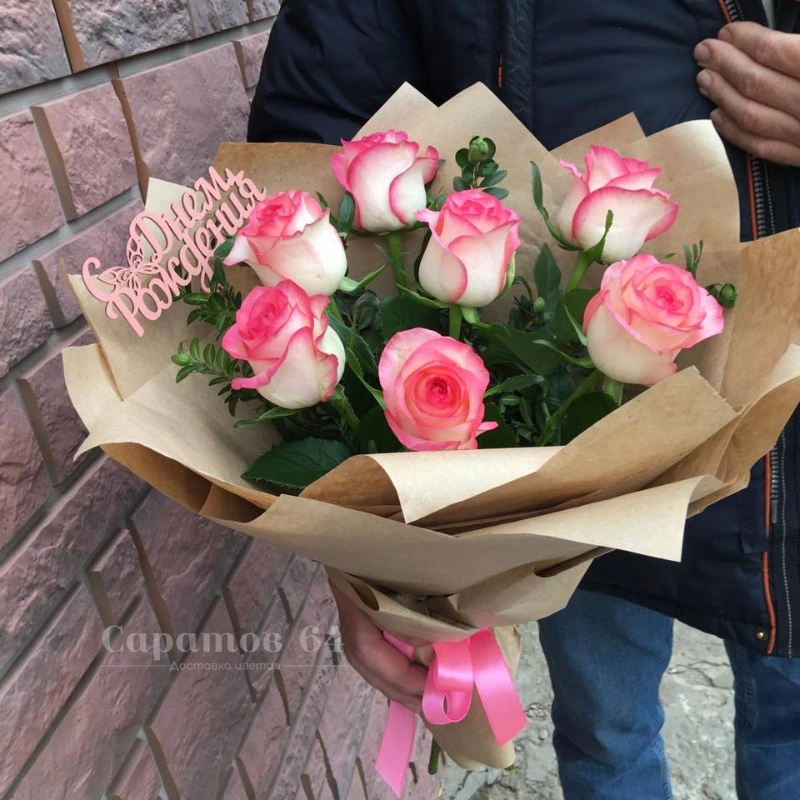 ГлавнаяКаталогРозыБукет 7 роз в крафте «привет»