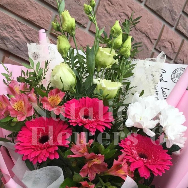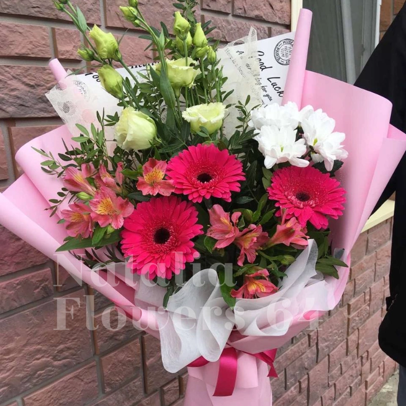 ГлавнаяКаталогБукетыБукет с герберами «ягоды на снегу»
