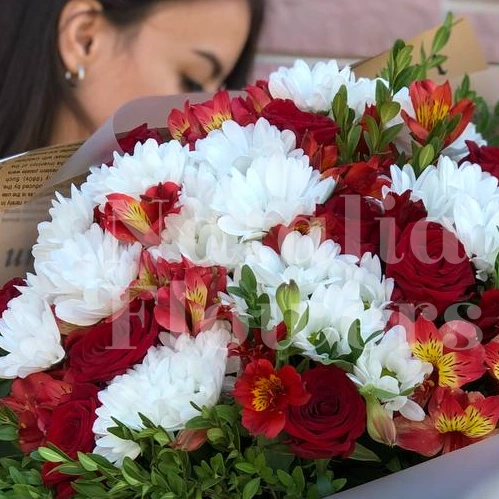 ГлавнаяКаталогБукетыБукет с ромашковой хризантемой и розами «Яркая зима»