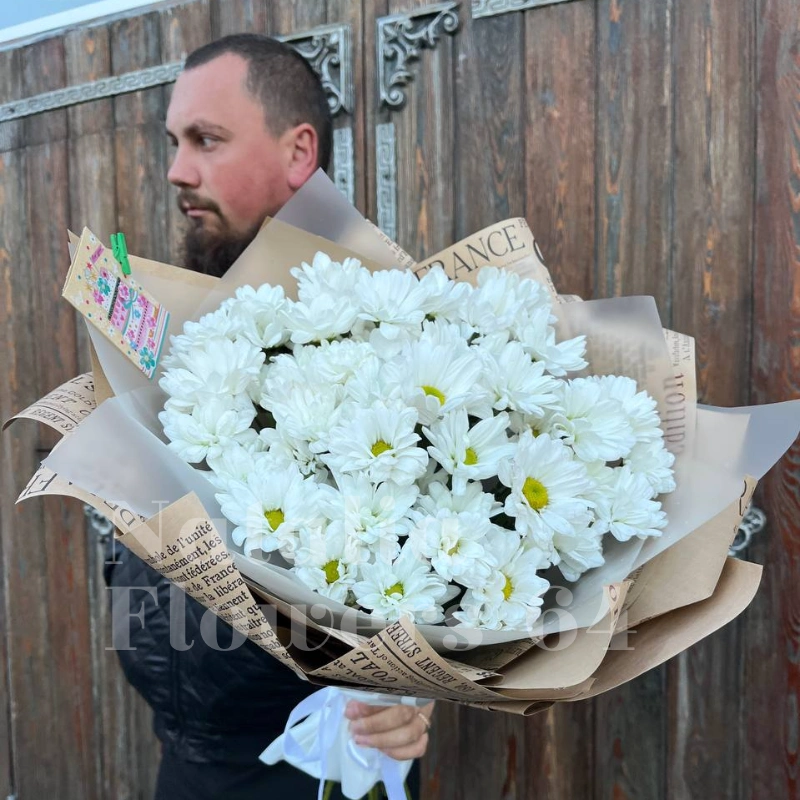 ГлавнаяКаталогБукетыБукет из ромашковой хризантемы «Белое облако»