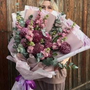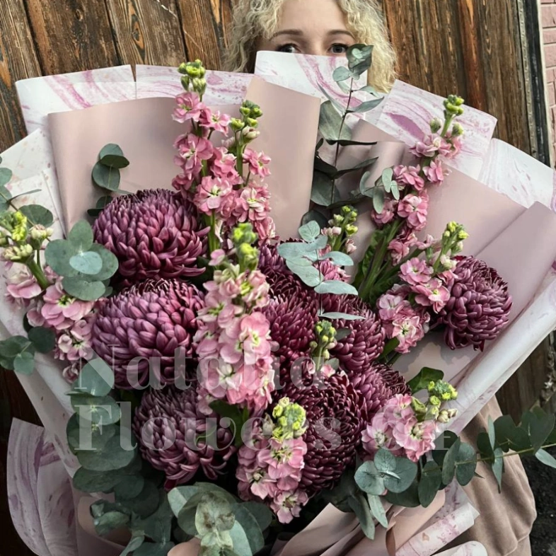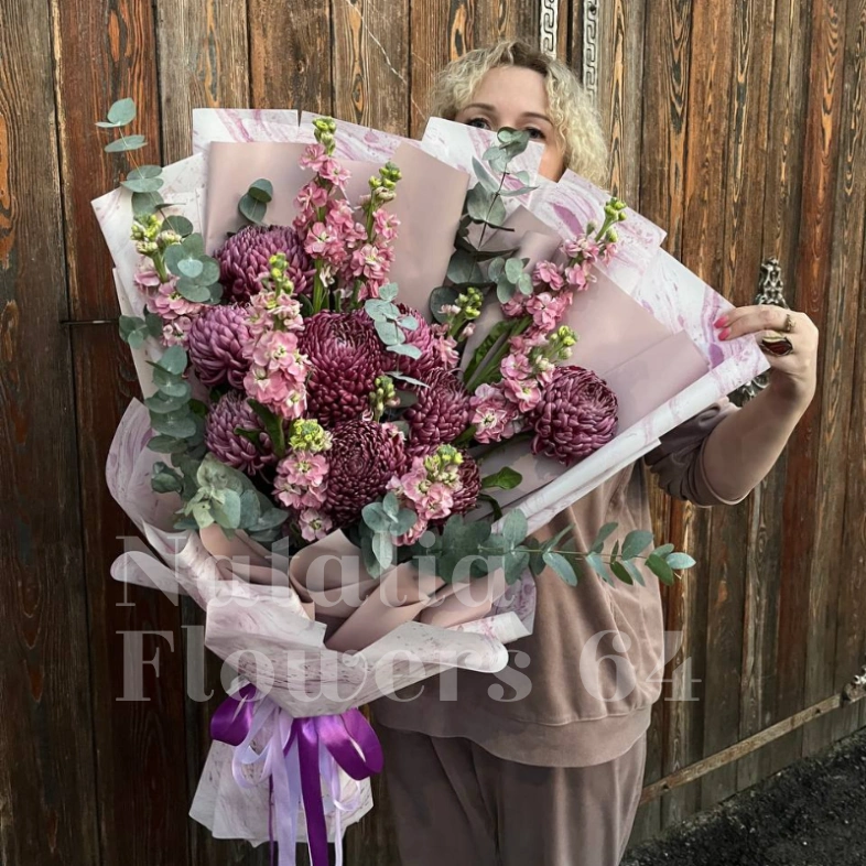 ГлавнаяКаталогБукетыБукет из хризантем и матиолы «вечер на виноградних»