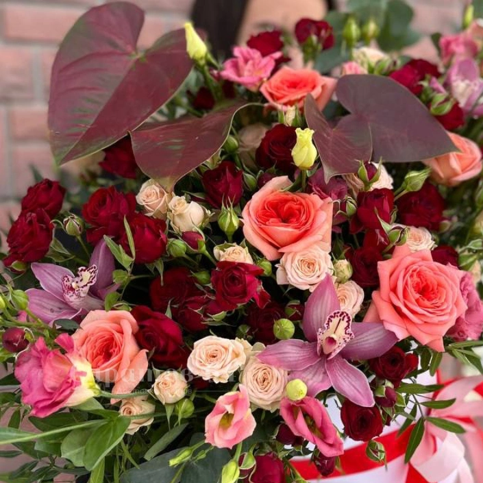 ГлавнаяКаталогКомпозицииКомпозиция в шляпной коробке «антуриумы»