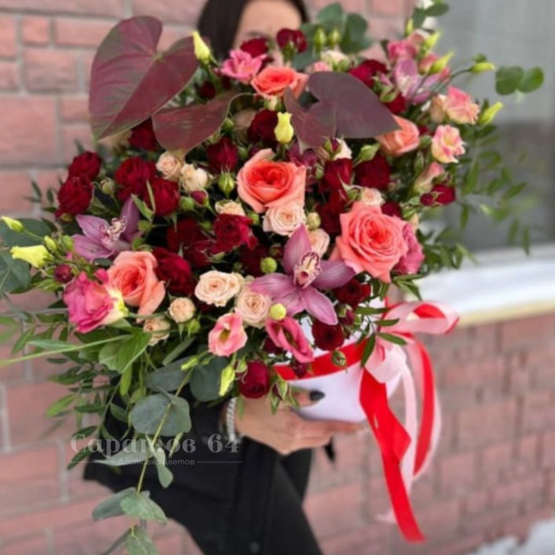 Композиция в шляпной коробке «антуриумы»
