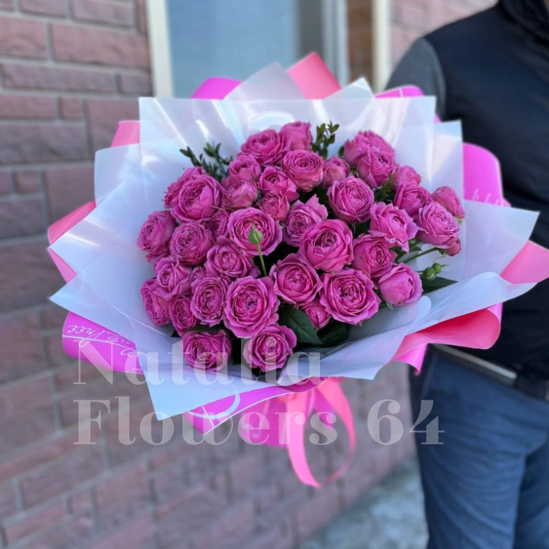 ГлавнаяКаталогРозыБукет с пионовидной розой «малиновый джем»