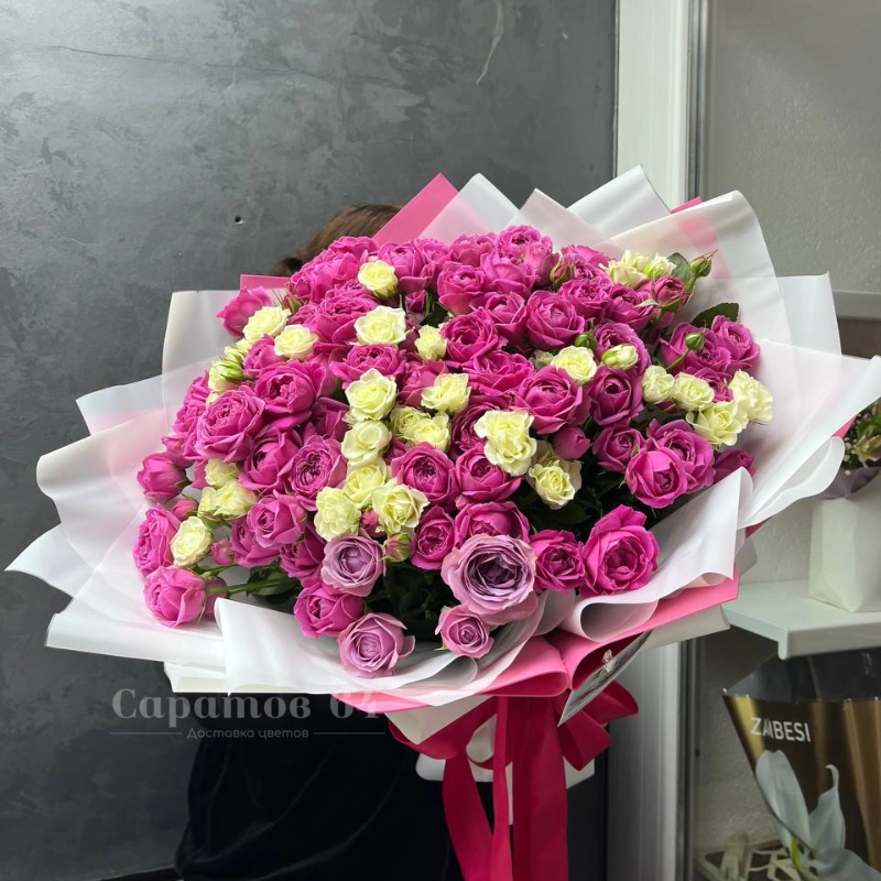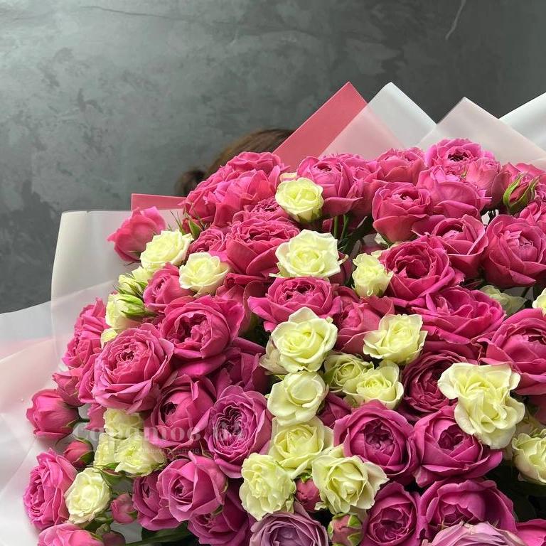 Букет из пионовидных кустовых роз «Мисти баблс»