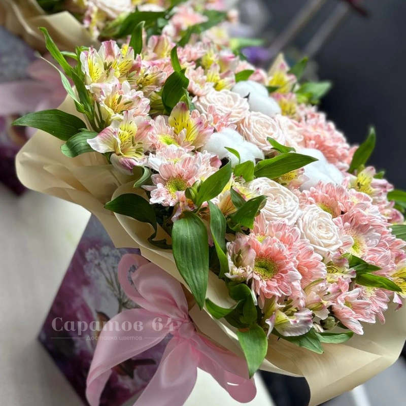 Букет с розами и альстромериями «Весенний вальс»