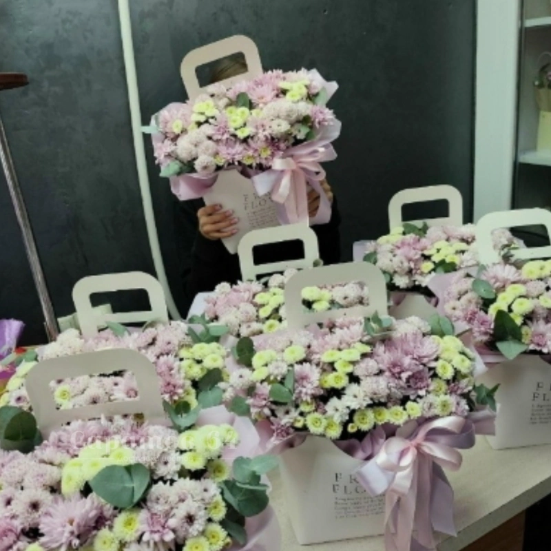 Цветы в картонной сумочке «белая гербера»