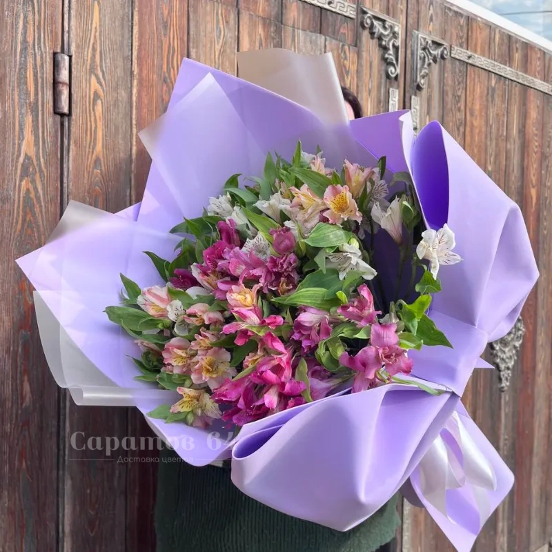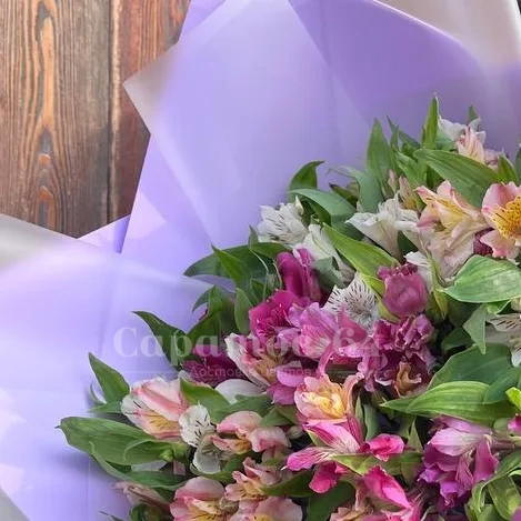 ГлавнаяКаталогБукетыБукет 15 альстромерий микс с бантом