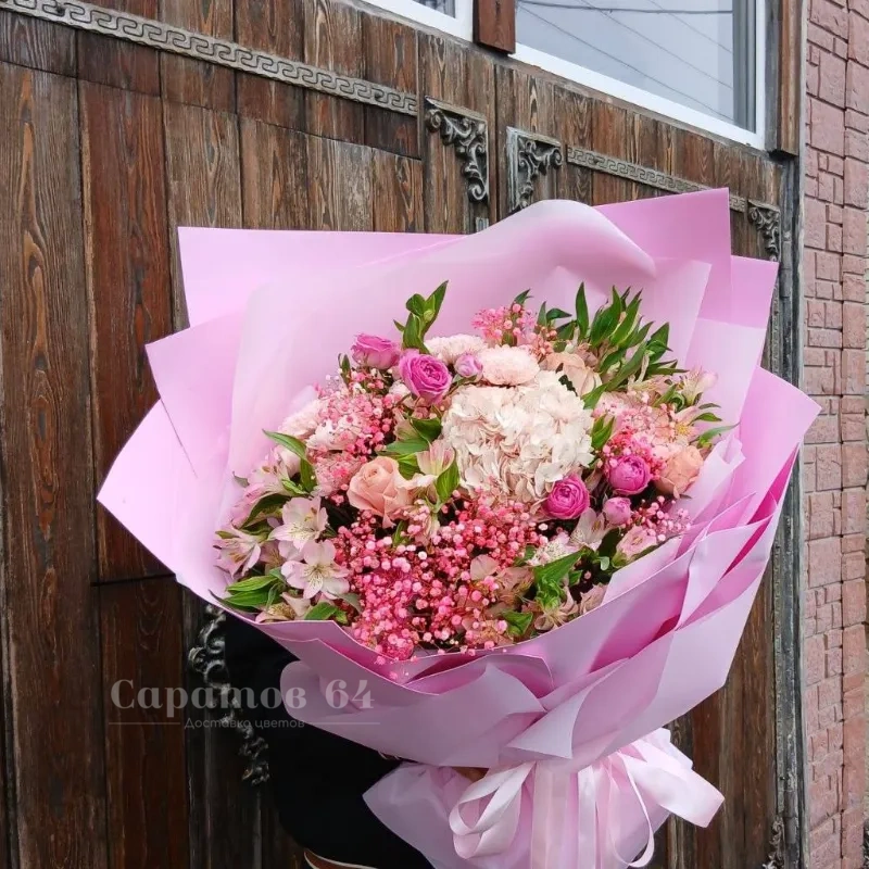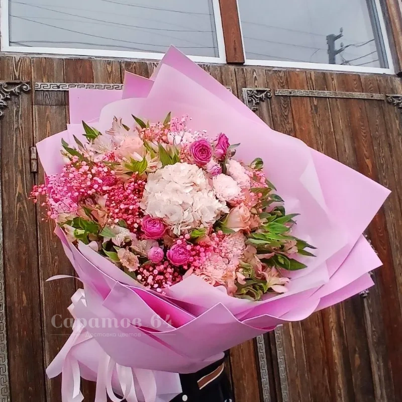 ГлавнаяКаталогБукетыСборный большой букет с гортензией, хризантемами и альстромерией